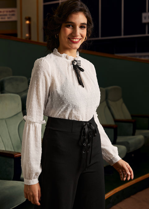 Svøb dig ind i vinterens lunefulde varme med Bygone Beauty Balloon Sleeve Blusen fra vores navnebror ModCloth. Draperet i en delikat Vanilla Mist elfenbensfarvet farve, kan dette vævede vidunder prale af bølgende ballonærmer og en forførende nøglehulslukning, perfekt til at tilføje et strejf af vintage elegance til dit outfit. Det lette stof og den afslappede pasform gør den til en ideel partner til højtaljede bukser og en charmerende broche, der problemfrit går fra en hyggelig caféeftermiddag til en fortryllende aftensoiré.
