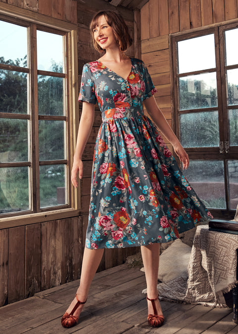 Midikjole i vintage-stil med sommerfuglemotiv