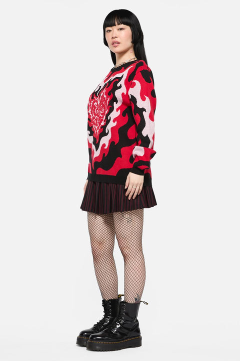 Sæt et dristigt statement med Heartbreak Knit fra Black Friday. Denne grafiske bomuldstrøje har iøjnefaldende ‘Heart Beat’-kunst på tværs af forsiden, ryggen og ærmerne, hvilket giver seriøs alternativ energi med en blød og behagelig fornemmelse. Med en afslappet pasform og ribbede finish er det det perfekte, hyggelige stykke tøj til at udtrykke din ikke-så-bløde side.