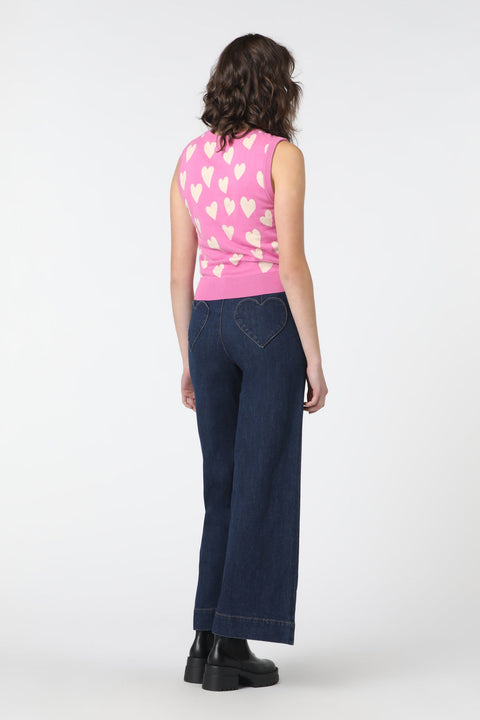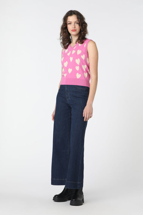 Forbered din garderobe til et hjerte-til-hjerte-møde med Love Hearts Vesten, hvor mantraet er “bær dit hjerte på din… vest”. Vores Love Hearts-styles er håndmalet med omhu og er et bevis på sød, sartorial hengivenhed, der indfanger essensen af beundring sting for sting. Dette semi-fitte stykke tøj krammer dig på alle de rigtige steder takket være en generøs stretch, der sikrer, at komfort aldrig ofres for stil. Dyk ned i en V-halsudskæring, der både smigrer og indrammer, og leder øjnene på en rejse af moderigtig hengivenhed. Men det handler ikke kun om det kærlige; det ribstrikkede ærmegab, V-hals og kant tilføjer et strejf af tekstur, der beviser, at sans for detaljer virkelig er vejen til hjertet. Denne vest er fremstillet af et blødt bomuldsgarn og er ikke bare et beklædningsgenstand – det er en blød omfavnelse, et bærbart kærlighedsbrev, der siger meget om din stilfortælling. For et stykke tøj, der er lige så hyggeligt som et varmt kram og lige så elegant som en første date, er Love Hearts Vest din garderobes nye kæreste.