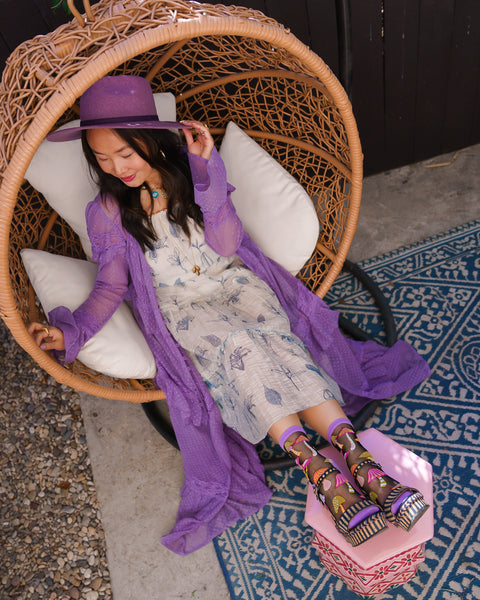Vi vil ikke prale, men disse er de sødeste svampe, du nogensinde vil have på dine fødder. Udfold din indre boho-dronning og tilføj et strejf af finurlighed til dit look med vores svampelignende sokker, der modstår et sort, transparent stof for en mystisk stemning.
