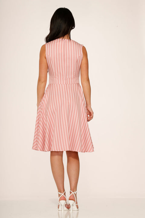 Lys, luftig og ubesværet charmerende – den lyserøde stribede swingkjole fra Orchid Bloom er skabt til solrige dage og søde øjeblikke. Med et blødt lyserødt stribemønster og en flatterende vintage-inspireret silhuet er den en legende tilføjelse til enhver garderobe.