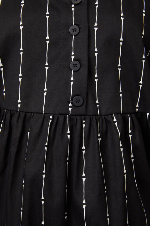 Kom i uhyggelig ånd med Funny Bone Pinafore, et gotisk-inspireret stykke tøj, der giver et legende twist til din garderobe. Med en heldækkende knoglestribet grafik kombinerer denne afslappede pinafore mørke, edgy vibes med et sjovt, finurligt design. Den ærmeløse stil og runde halsudskæring giver alsidighed, mens midi-længden giver en flatterende, let at have på silhuet.