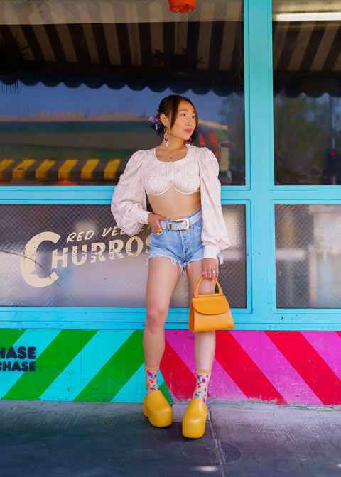 Føl dig som forår hele året rundt i livlige blomstermønstre parret med en markant hæl og en delikat, gennemsigtig figur. Denne gennemsigtige, blomstrede sok er designet til at blive båret med dine sæsonbestemte overgangssko, såsom en mule med hæl eller en sandal med lukket tå.