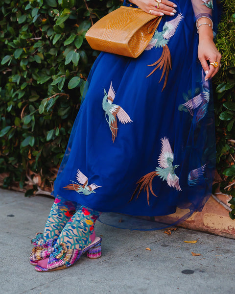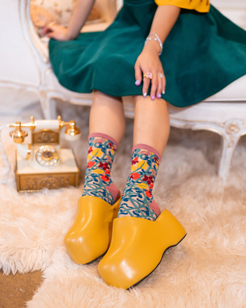 Vintage gobelin-ranker formes til efterårsblomster, livlige knopper og finurlige fugle på denne jordagtige, gennemsigtige sok. Duo-print-designet giver dig mulighed for at ændre dit look og parre det med alt fra chunky træsko til ankelstøvler. En boheme-farvepalet giver denne gobelin-printede sok en frisindet vibe.