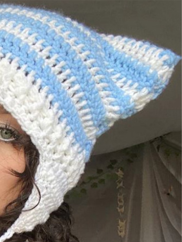 Hand Made Cat Ear Stripes Knitted Hat
