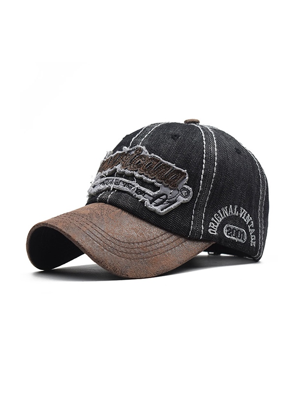 Letter Embroidered Distressed Denim Baseball Cap