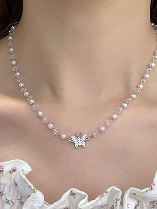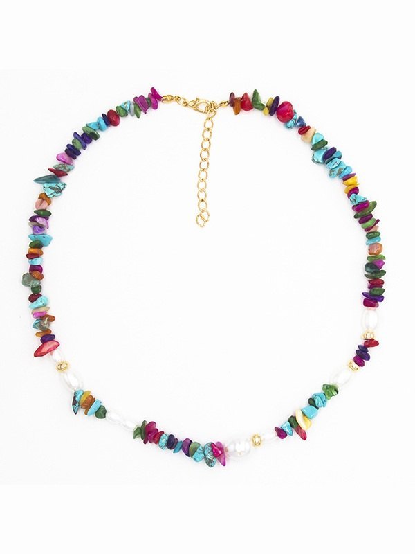 Boho Colorful Stone Beads Faux Pearl Necklace