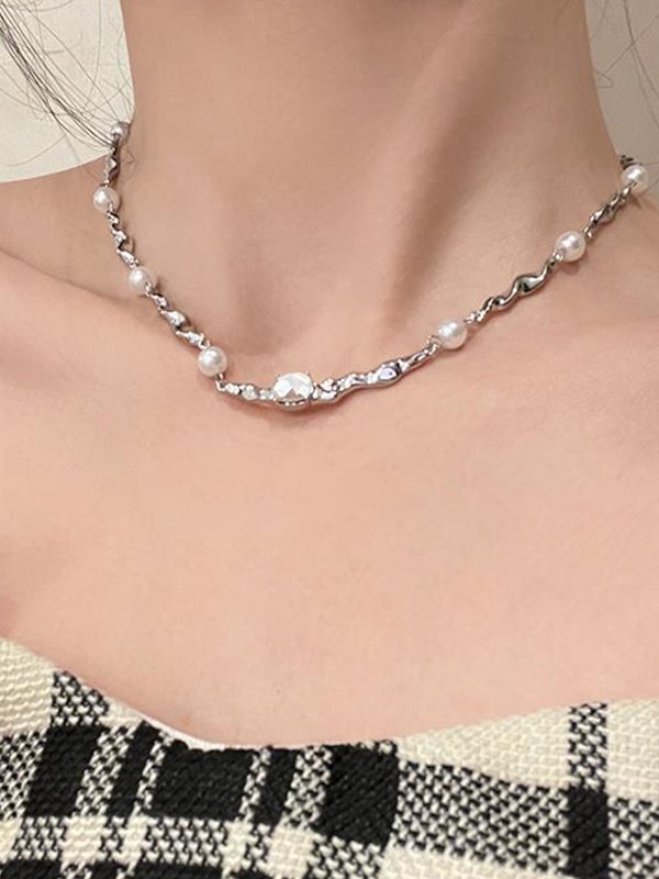 Silver Chain Faux Pearl Necklace