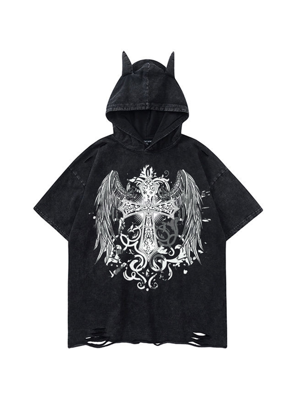 Men’s Wings Hooded Print Oversized Short Sleeve Tee