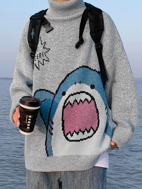 Men’s Cartoon Shark Turtleneck Pullover Sweater