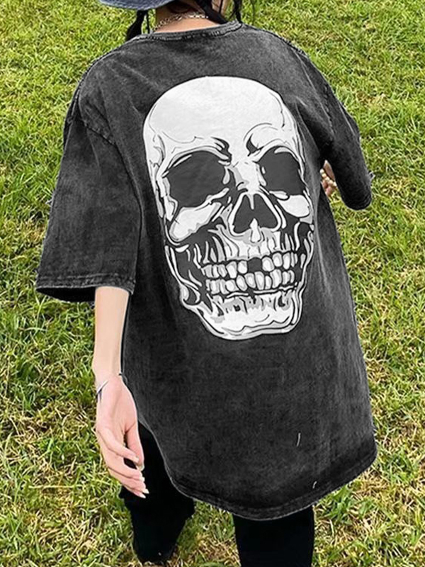 Men’s Wash Distressed Skull Print Short Sleeve Tee