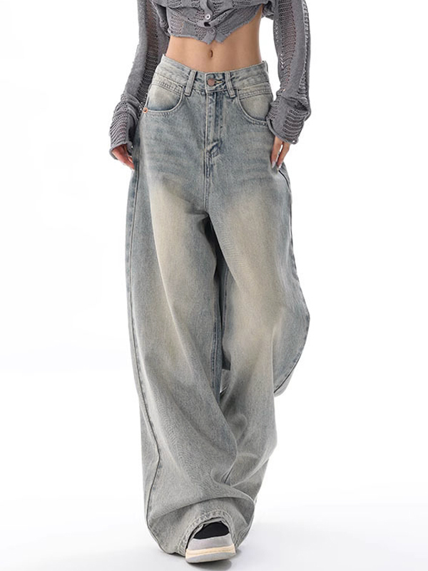 American Retro Cat Whiskers Straight Loose Jeans