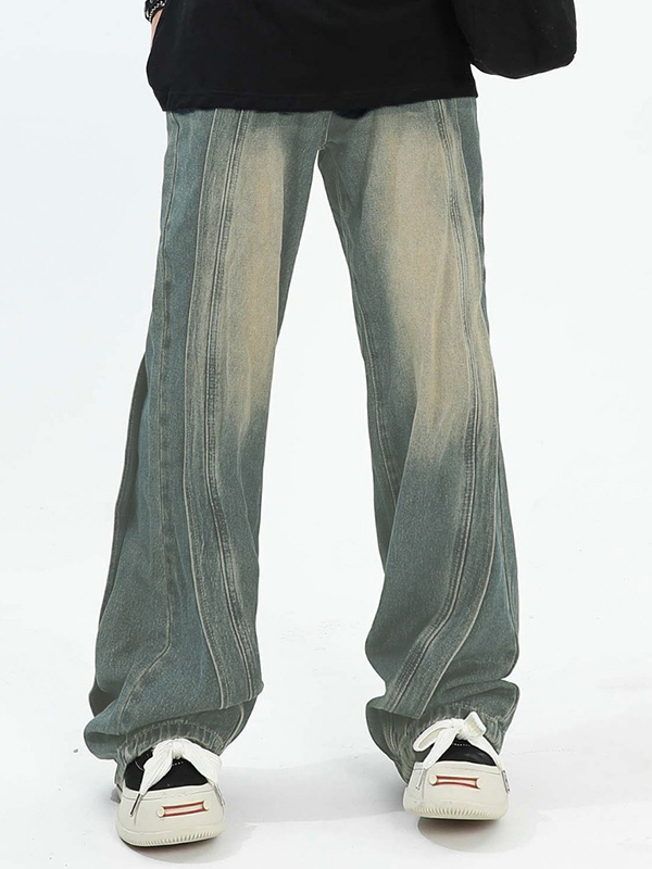 Hip Pop Multi Pocket Raw Trim Tie Up Cargo Jeans
