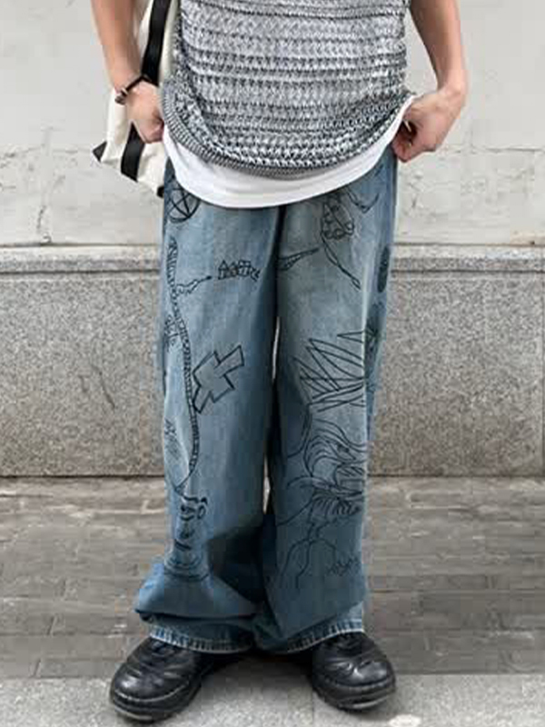Men’s Fun Hand-Painted Print Jeans