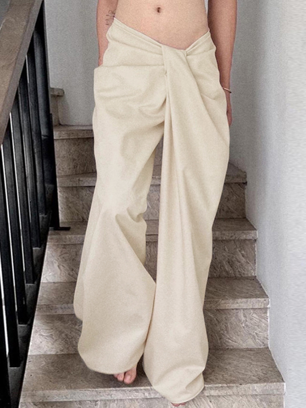 Irregular Twist Front Ruched Low Rise Wide Leg Pants