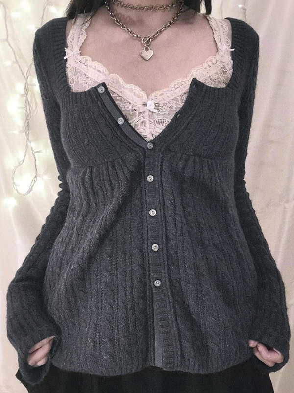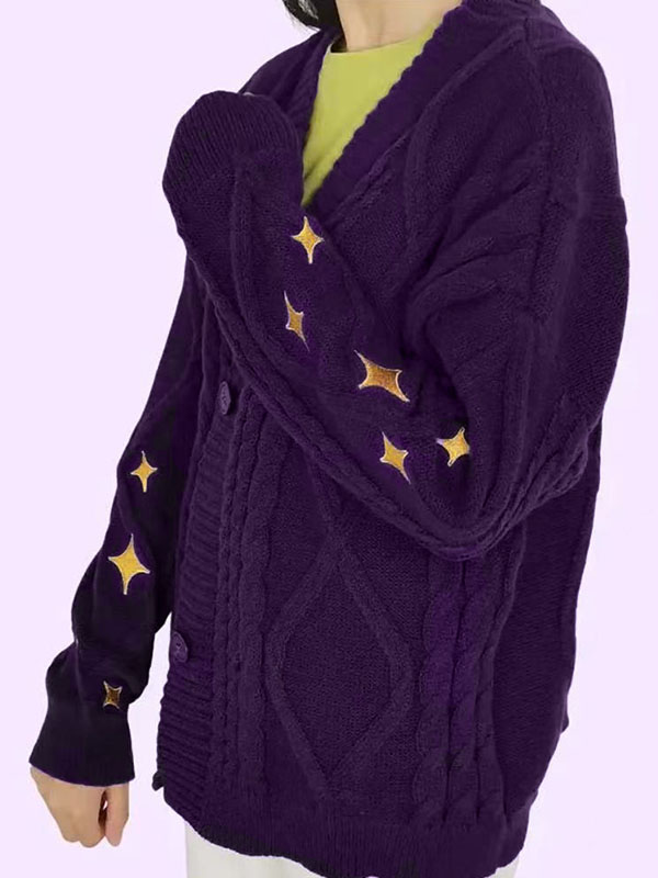 Star Embroidered Print Cable Knit V Neck Cardigan