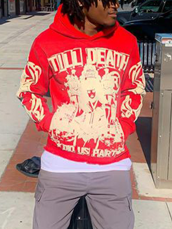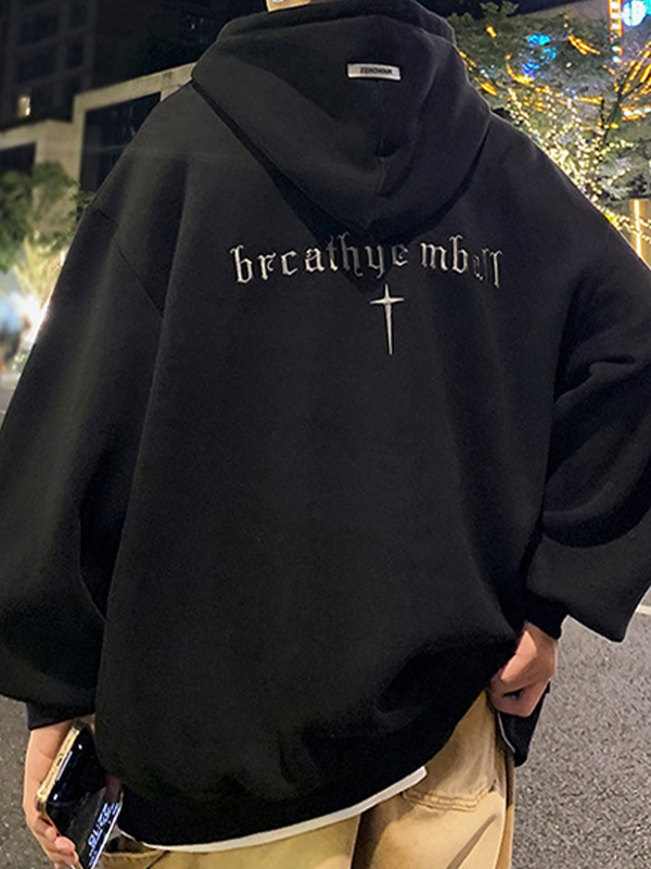 Men’s Cross Lettering Oversized Long Sleeve Hoodie
