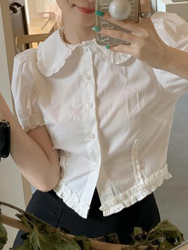 Solid V Neck Slit Trumpet Sleeve Long Sleeve Blouse