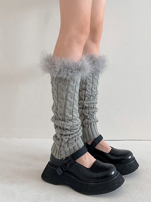 Fuzzy Trim Cable Knit Socks