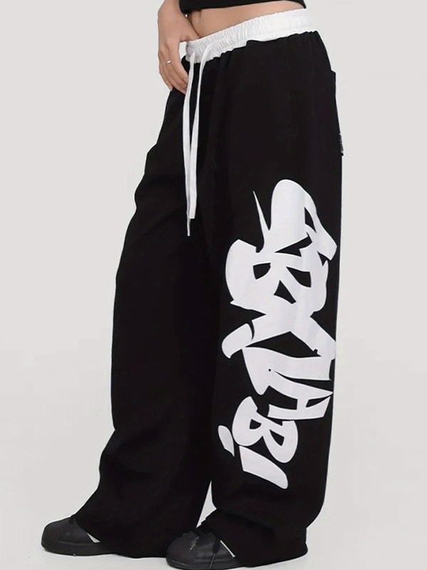 Letter Print Wide Leg Pants