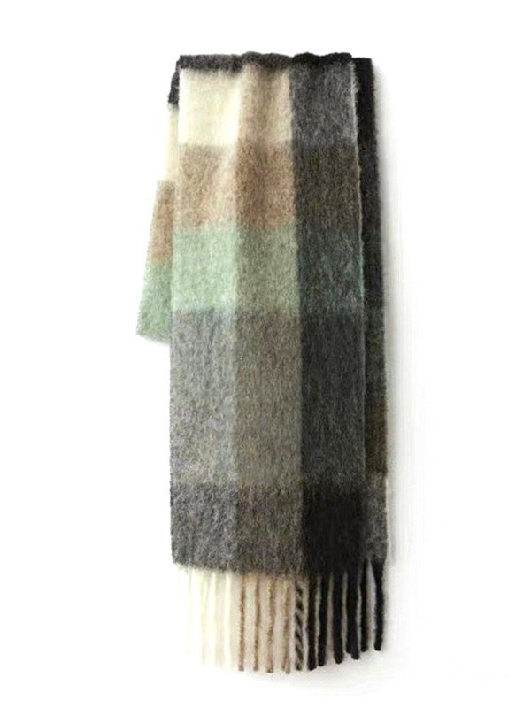 Rainbow Checker Fringed Oversized Scarf