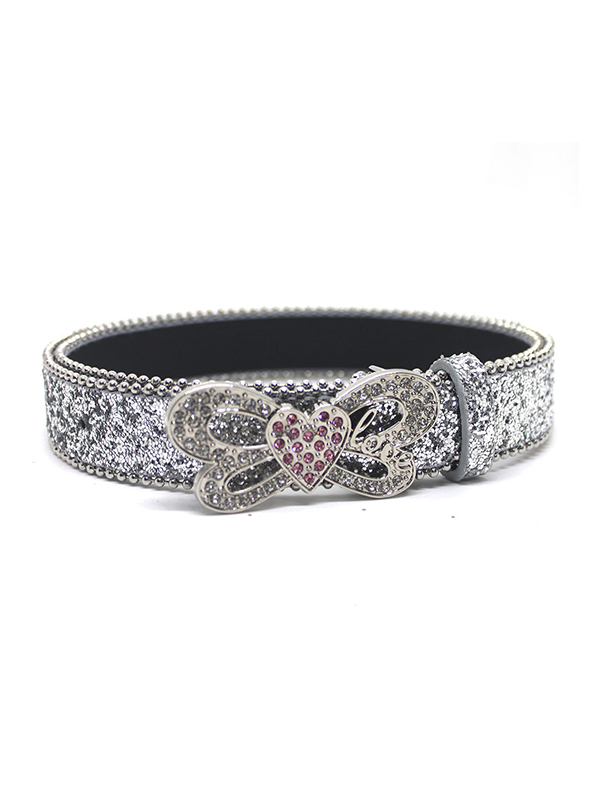 Sequined Rhinestone Heart Butterfly Belt