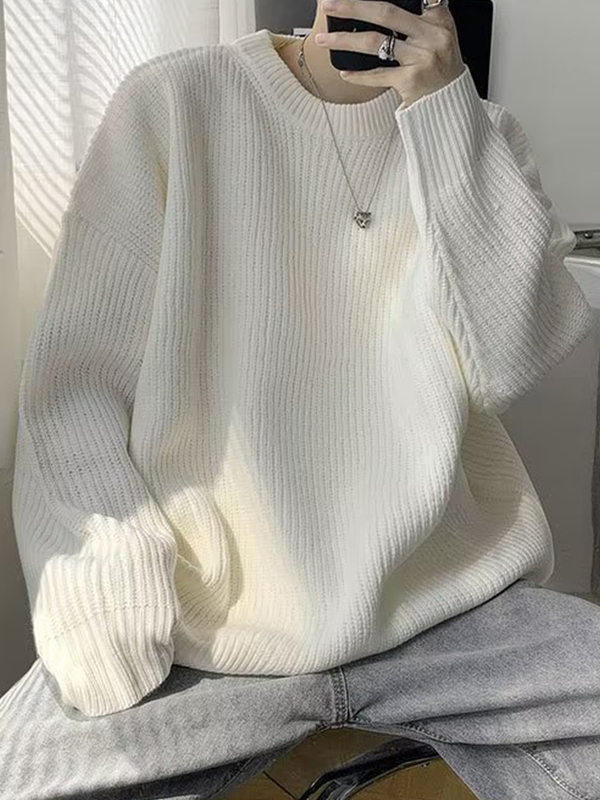 Men’s Knit Solid Color Loose Sweater