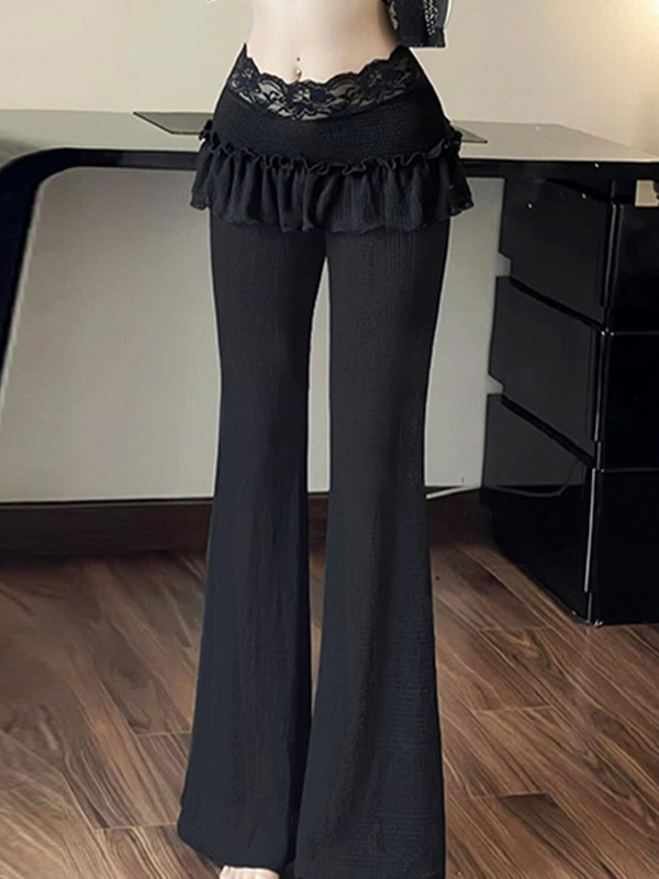 Lace Patchwork Wooden Trim Flare Leg Pants