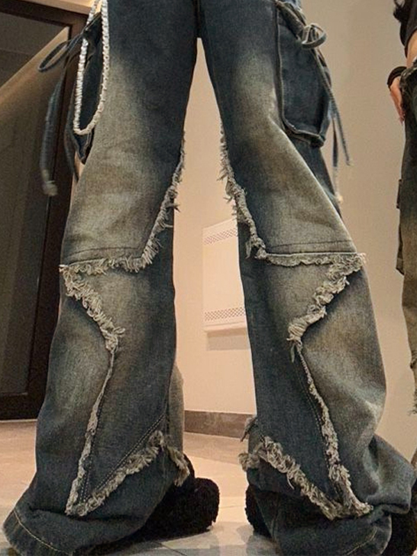 Star Shape Raw Trim: The star shape raw trim gives these jeans a vintage and street vibe.