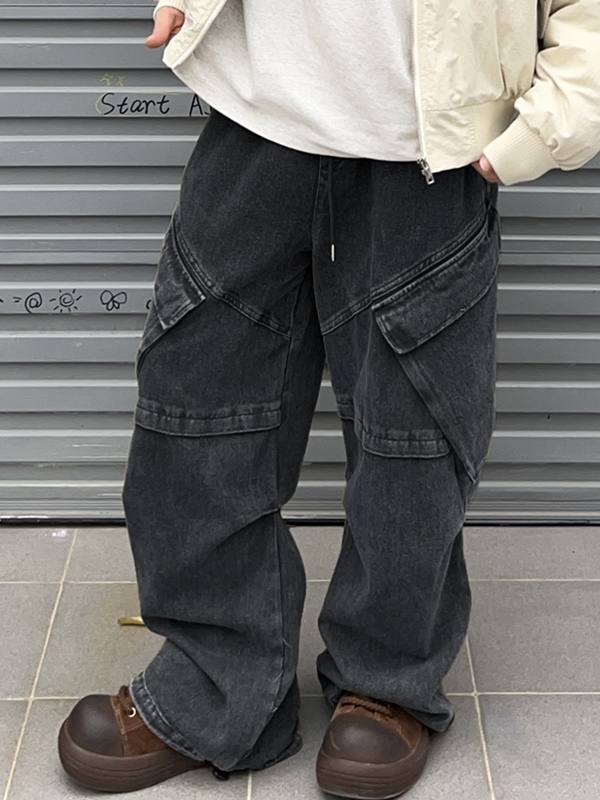 Description: Shaped with an elasticated drawcord waistStyle, features cargo leg pockets with extended straps on it, and has a label paneled design.
