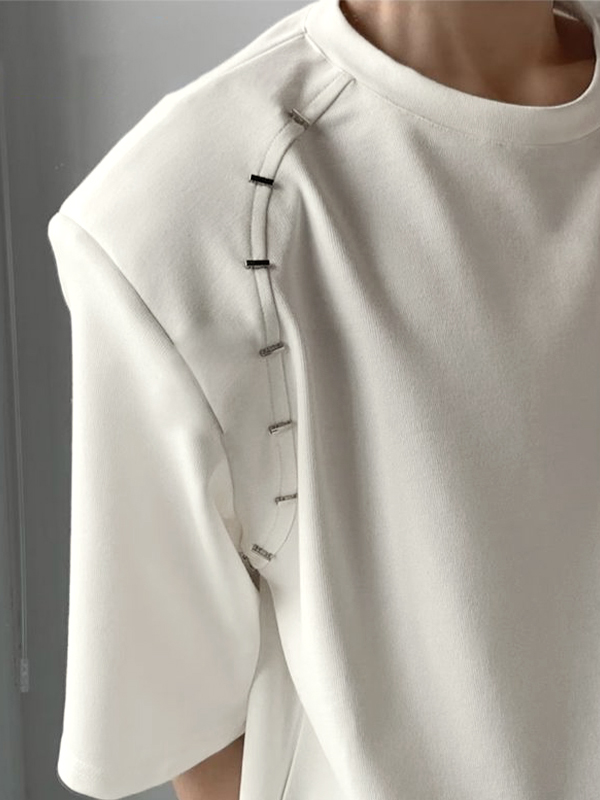 Men’s Solid Splice Shoulder Pad Short Sleeve Tee