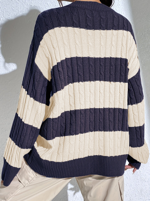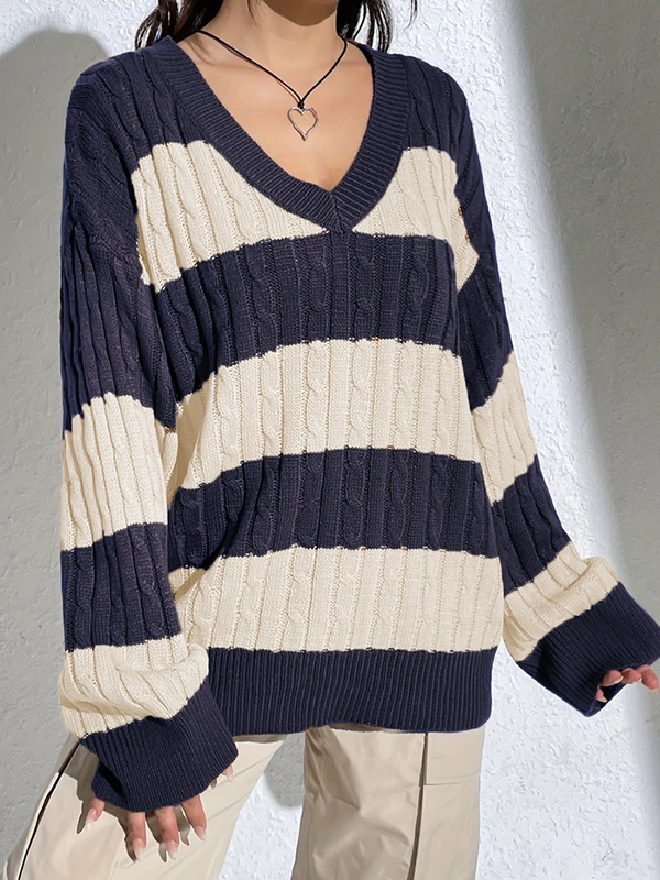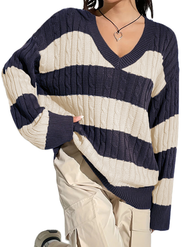 Be the first to review “V Neck Loose Contrast Stripes Casual Sweaters”