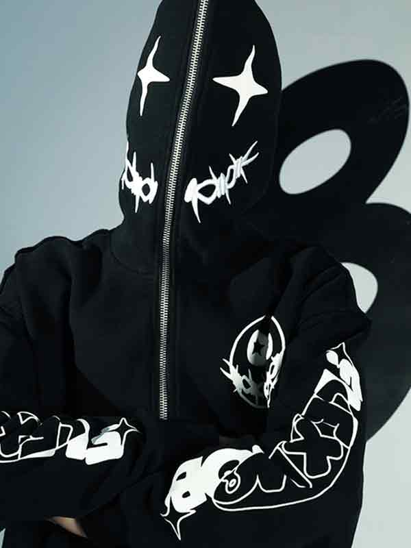 Men’s Heart Spider Web Print Zip Up Oversized Hoodie