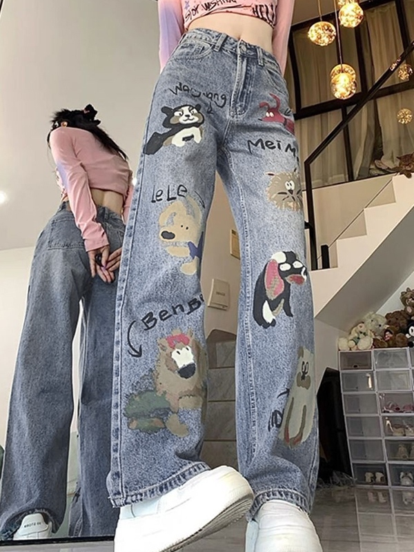 Animal Graffiti Print High Rise Boyrfriend Jeans